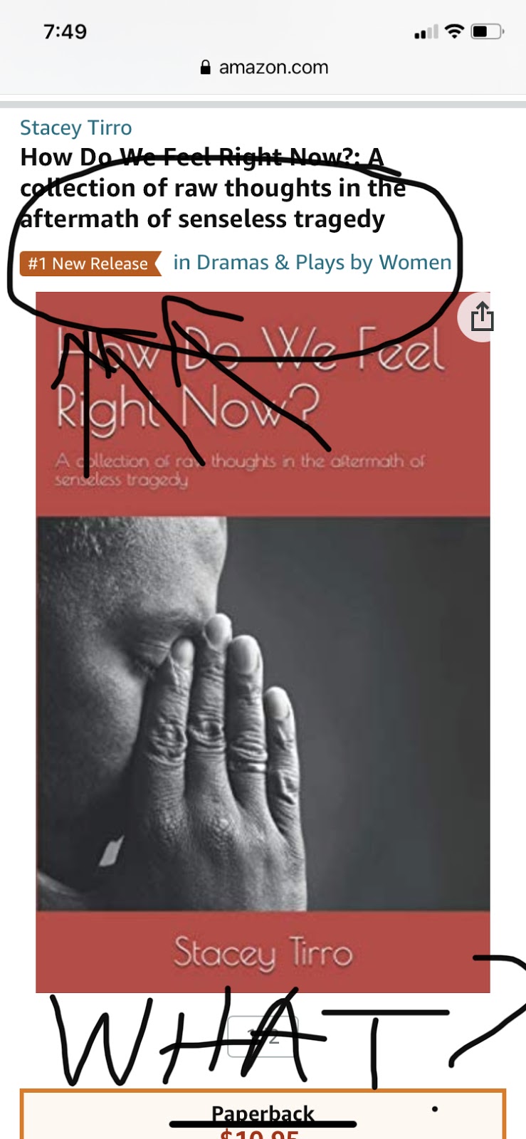 That Monday, another friend texted me some congratulations. He also told me that my book was #1 in New Releases in Dramas by Women. That hit me. No matter how small, #1 in something good is something great. I kept clicking and looking at that image – a little orange banner under the title and publishing date. I’m really proud of that little banner.