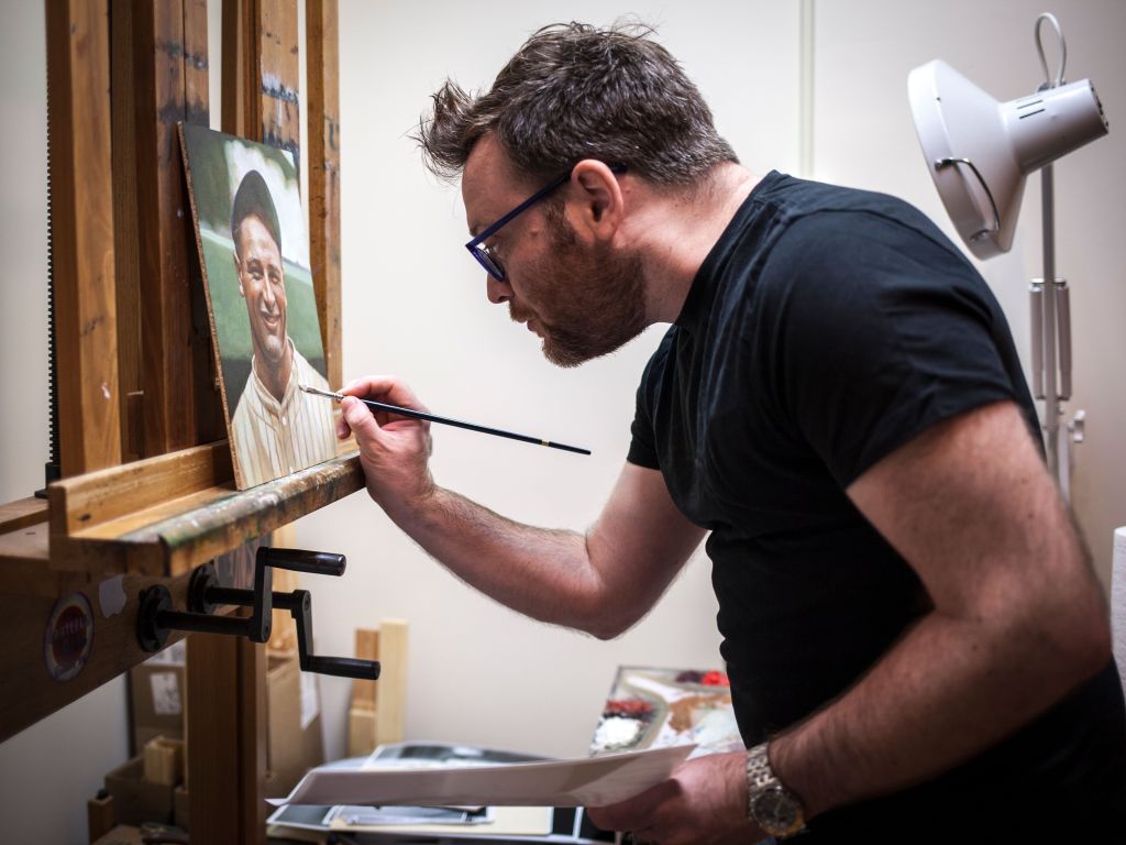 Painting cures all; it provides me with something I can get lost in. Time and space kind of stop and you’re just somewhere else and there’s something else going on that you’ve tapped into. That’s a meditative state that is bliss. I can escape in the work. Doing the baseball stuff for me is so important; tapping into the past, into nostalgia, is what makes me happy.