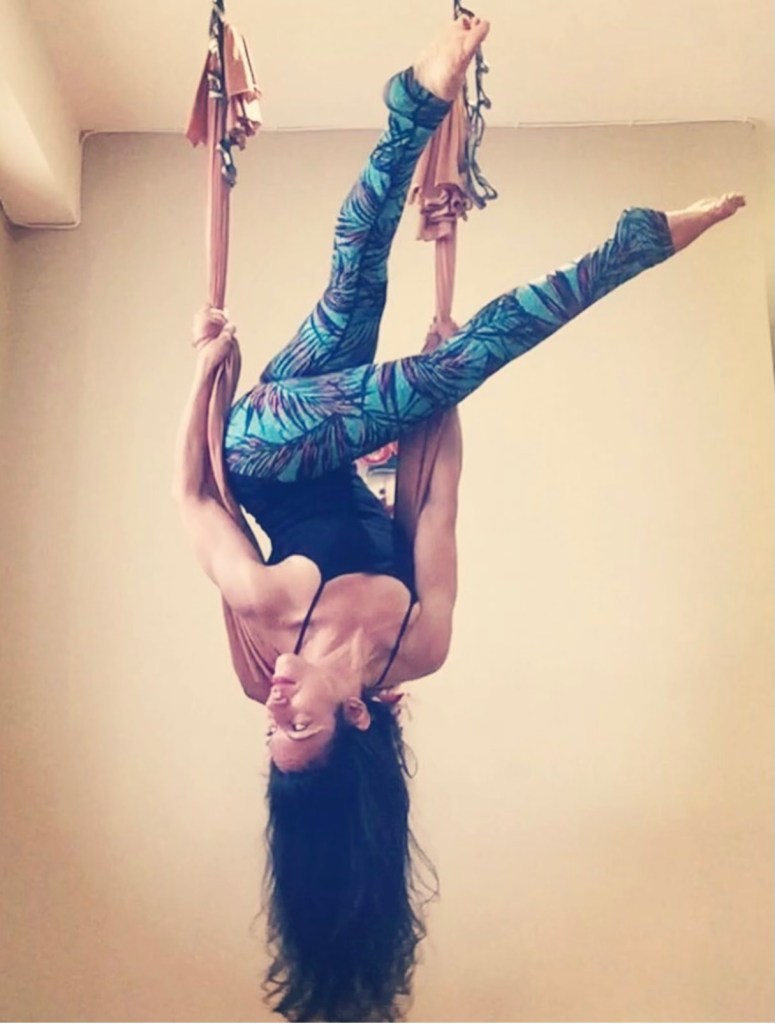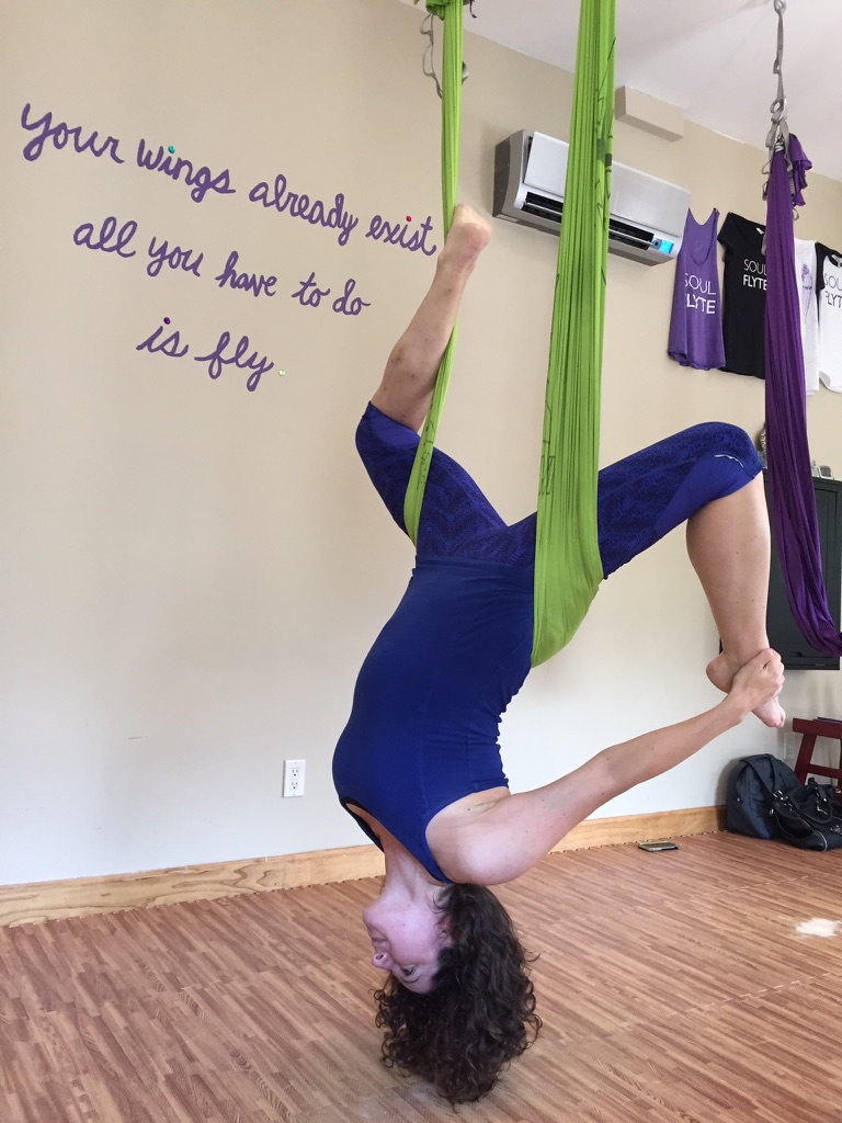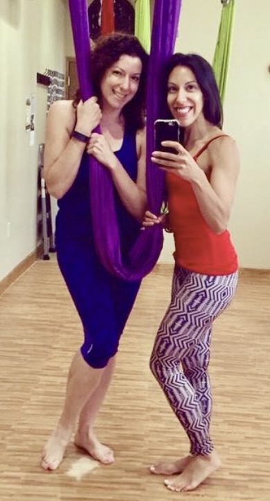 As I mentioned, our paths continued to cross over the years. Our first reconnect was back in August 2015, when a new aerial yoga studio had opened up and I thought it might be a fun summertime treat to try. I walked in to the class and guess who the instructor was? You guessed it – Robyn. She introduced me to this amazing world of “flying” and hanging upside down in a silk hammock. Oh, how the tides had turned; the student became the teacher, and I couldn’t have been more excited for the experience.