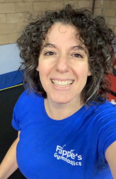 Happy me in my blue Flipper’s Gymnastics staff shirt when I first started coaching.