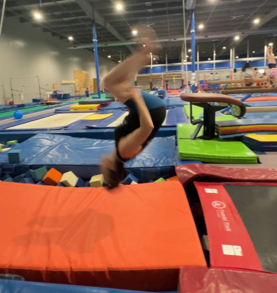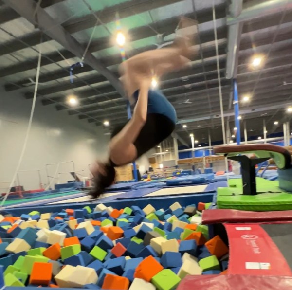 In the months since my foot healed completely, every time I looked at the TumblTrak I’d shudder. The thought of flipping backwards put me into shutdown mode. I’d literally stand on the bed with my arms up, and I’d freeze and walk away. I started to think, maybe I should just let it go. Maybe I’d stick to front tumbling there and be done with it. It would be fine. I’m 52. I’m allowed to say no.
